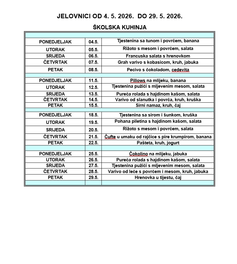 Aktualni jelovnici po mjesecima: